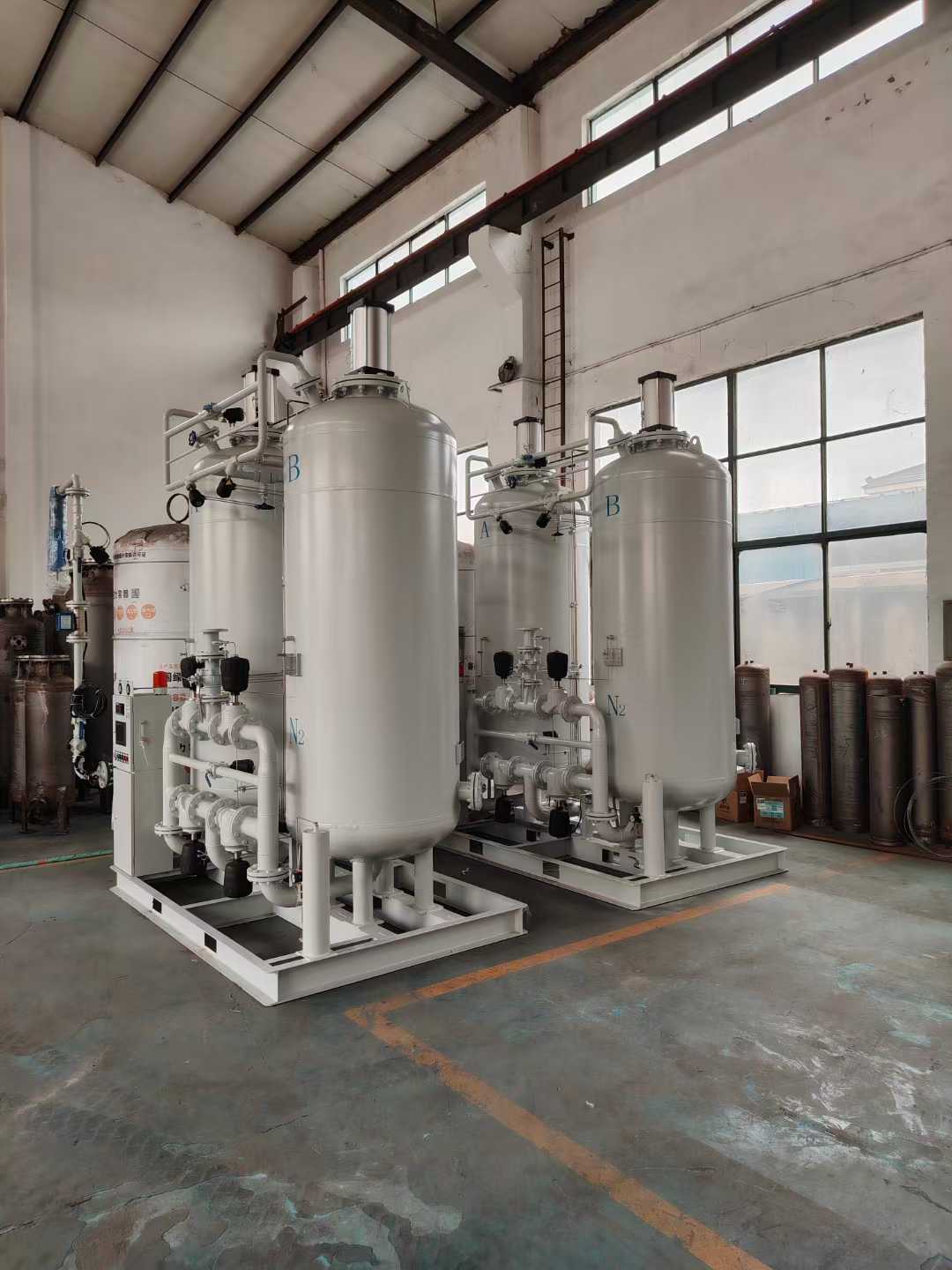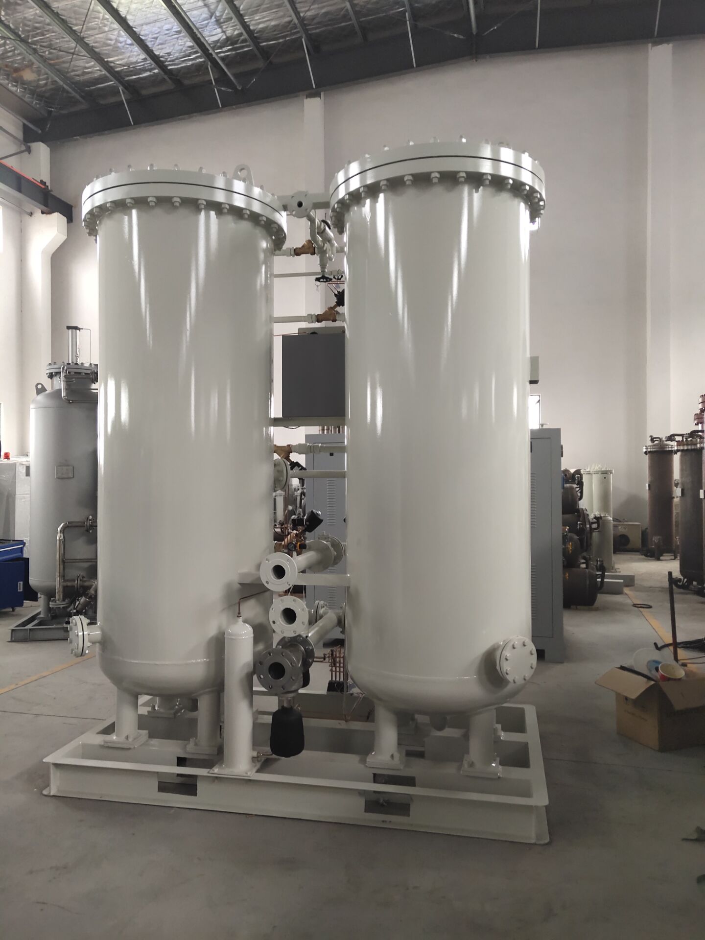 PSA nitrogen generator uses air as raw material, carbon molecular sieve as adsorbent, uses the principle of pressure swing adsorption, and uses the method of selective adsorption of oxygen and nitrogen by carbon molecular sieve to separate nitrogen and oxygen, and produces nitrogen automatic equipment.